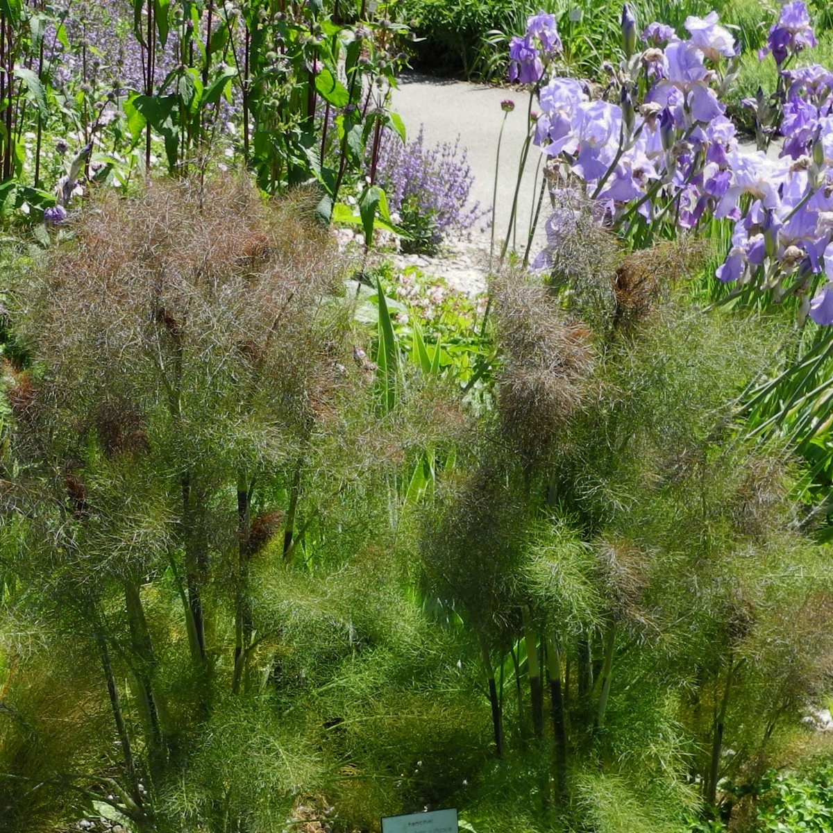 Der Bronze-Fenchel (Foeniculum vulgare) Purpureum ist eine ausdauernde, mehrjährige krautige Pflanze. Er bevorzugt volle Sonne, kann aber auch im Halbschatten gedeihen. Am besten wächst er in reichem, feuchtem, gut durchlässigem Boden. Seine Blüten und Blätter haben einen süßen, milden Anis- oder Lakritzgeschmack. Die Sorte 'Purpureum' ist bekannt für ihr attraktives lila-bronzenes Laub.